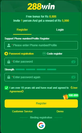 After these steps, your account will be ready to access the 288 Wine game download APK platform.