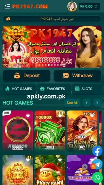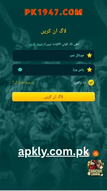 The app supports popular payment methods like JazzCash and EasyPaisa, making deposits and withdrawals quick and convenient after PK1947 login.