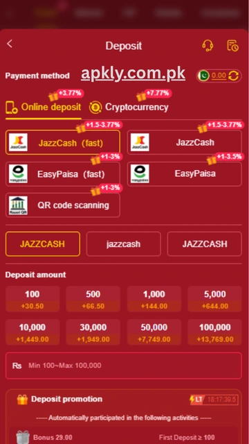 | Minimum Deposit | PKR 100 |